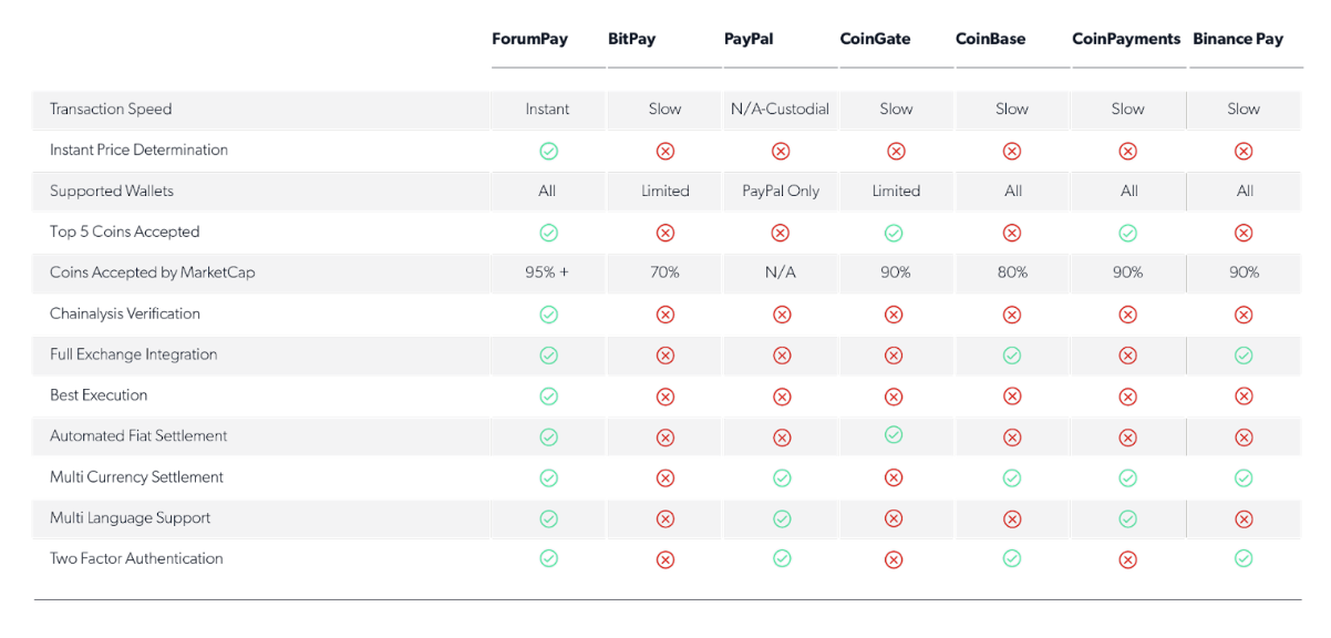 Below is a chart highlighting how ForumPay stands out from other crypto payment platforms.